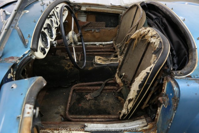 | Description | The project 1960 MG A Roadster shown here is available in light blue with black interior. It comes equipped with a manual transmission, wire wheels, soft top and with the side curtains. An excellent candidate with tremendous potential for full restoration. However, it is missing an engine. It has been with the same owner since 1966. For $5,950 USD If you have any additional questions Please call 310-975-0272 Check out our YouTube Channel: http://www.youtube.com/user/BevHillsCarClubInc | |||||||||||||
